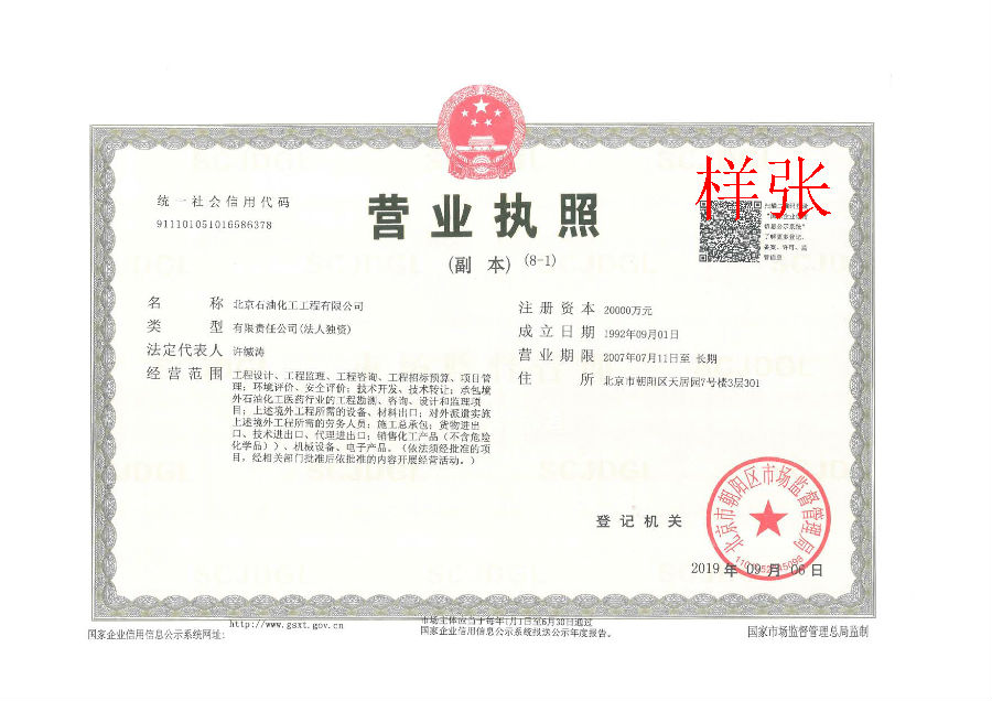 工程設(shè)計資質(zhì)證書(化工石化醫(yī)藥行業(yè)甲級)