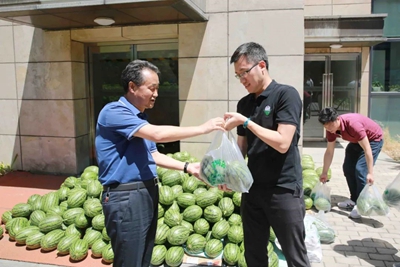 公司黨委副書記、工會主席、職工董事景建民將西瓜發(fā)到員工的手里,并囑咐大家在堅守崗位的同時,注意勞逸結(jié)合,防暑降溫,增強自我保護意識。