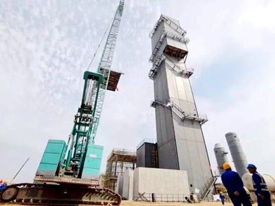 6月28日,由公司總承包的榆神能化50萬噸/年煤基乙醇項目,8萬等級空分裝置分餾塔系統(tǒng)主、副冷箱順利完成封頂,比“百日攻堅大會戰(zhàn)”節(jié)點提前22天完成。
