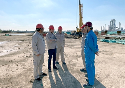 許緘濤首先來到項目現(xiàn)場,向堅守崗位的一線人員表示慰問,對他們的辛勤付出表示感謝,并叮囑大家在高溫環(huán)境下作業(yè)要做好安全防護和防暑降溫,鉚足干勁為實現(xiàn)雨季前的總體目標(biāo)不懈努力。