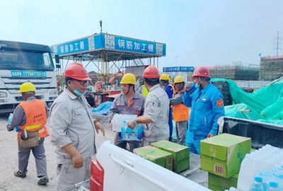 澆筑期間,正值高溫天氣,項(xiàng)目組采購了飲料、礦泉水等防暑降溫慰問飲品,為堅(jiān)守一線的工人送去絲絲涼意,感謝他們的堅(jiān)守與付出。