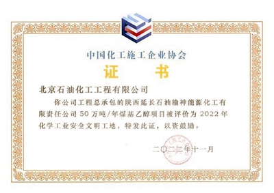 近日,由北京石油化工工程有限公司(簡(jiǎn)稱:北油工程)總承包的榆神能化50萬(wàn)噸/年煤基乙醇項(xiàng)目獲得中國(guó)化工施工企業(yè)協(xié)會(huì)頒發(fā)的“2022年度化學(xué)工業(yè)優(yōu)質(zhì)精品工程”、“2022年度化學(xué)工業(yè)安全文明工地”及“2022年度化學(xué)工業(yè)綠色施工工程”等三項(xiàng)殊榮。