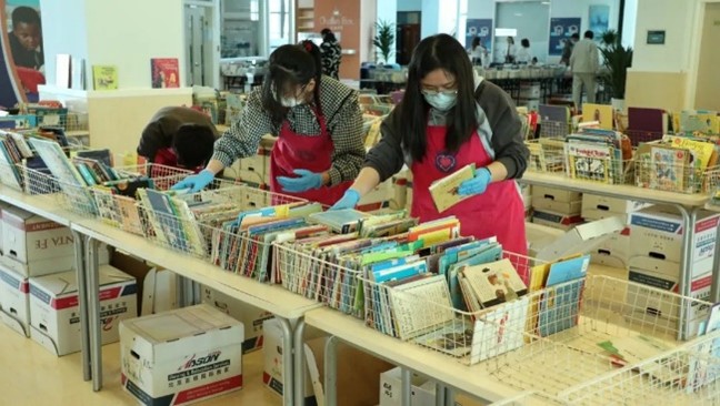 公司團(tuán)委組織志愿者來到慈善書市進(jìn)行志愿服務(wù)活動(dòng),對(duì)義賣圖書整理分類,并打包裝車。慈善書市是慈善商店常規(guī)的籌款活動(dòng),會(huì)在各學(xué)校間輪流舉行。書市對(duì)公眾開放,收入全部用于困境兒童的救助。