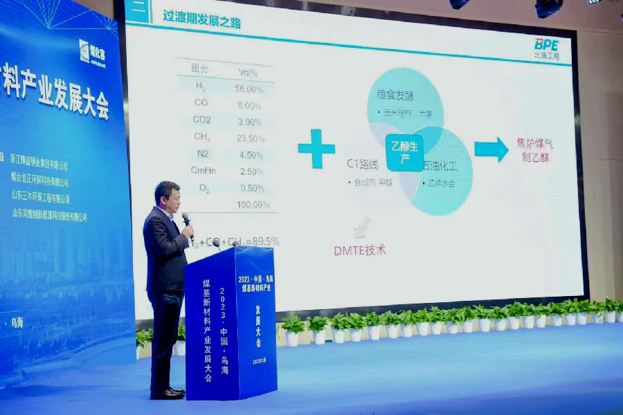北油工程副總經(jīng)理劉戈作為嘉賓以“從傳統(tǒng)焦化邁向新能源”為主題展開演講。目前煤化工產(chǎn)業(yè)的整體發(fā)展主要集中在甲醇、乙二醇等傳統(tǒng)領(lǐng)域,有發(fā)展煤基乙醇的潛在優(yōu)勢(shì)。劉戈提出,煤化工高質(zhì)量發(fā)展之路,要以焦?fàn)t尾氣制乙醇為媒介生產(chǎn)乙烯、醋酸乙烯、EVA、走向光伏領(lǐng)域,環(huán)氧乙烷、碳酸酯電池電解液,進(jìn)入電池新能源行業(yè)。