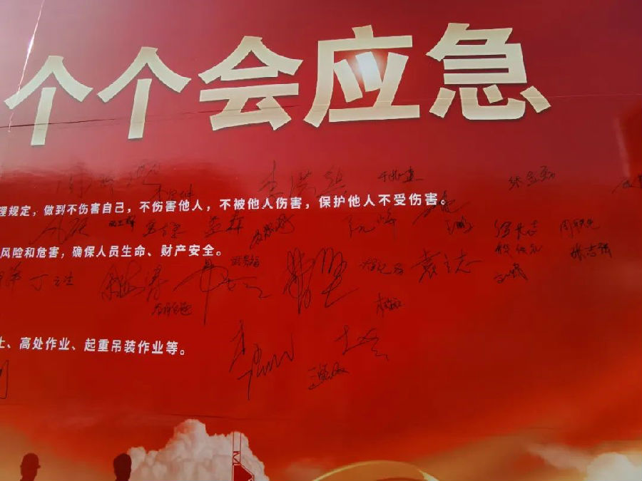 隨后,與會(huì)人員依次在“安全生產(chǎn)月”簽字墻上簽下自己的名字。通過“安全生產(chǎn)月”活動(dòng)的開展,警醒員工對(duì)安全的感知,增強(qiáng)安全生產(chǎn)的責(zé)任感,時(shí)刻繃緊安全弦,堅(jiān)守安全紅線,自覺規(guī)范操作,真正做到學(xué)安全、懂安全、能安全。