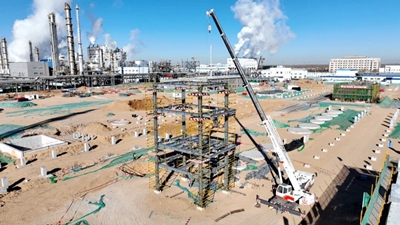 目前,項目已完成包括綜合樓、動力車間等所有建筑物的主體驗收工作,為項目后續(xù)建設(shè)創(chuàng)造了有利條件,同時安裝施工正緊張有序開展。NMP主裝置鋼結(jié)構(gòu)和全場管廊已全部完成,設(shè)備均已就位,配管及電儀施工同步進行,計劃春節(jié)前完成主要土建和安裝施工。