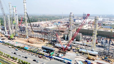 作為項目核心參建方,北油工程負責全場總體院及基礎設計、總承包20萬噸/年乙醇裝置(含電子級乙醇)工程。目前,乙醇裝置總體進度已完成56%,大件設備吊裝進度達60%。項目充分利用荊門化工園區(qū)盈德氣體提供的甲醇、CO等原料資源,有效延伸碳一化工產(chǎn)業(yè)鏈,對荊門打造千億級鋰電產(chǎn)業(yè)集群具有戰(zhàn)略意義。