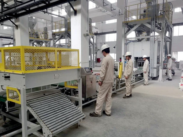 據(jù)悉,該裝置設(shè)置三條包裝線,單條包裝生產(chǎn)線每小時可以完成包裝1600袋40噸聚丙烯顆粒的能力。(通訊員/王秀珍 攝/王秀珍)